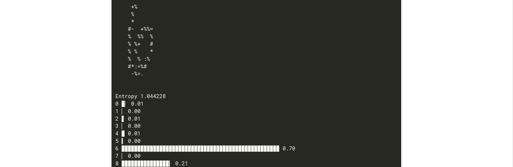 Wow! The model sometimes "sees" digit 6, sometimes digit 8, and sometimes digit 9! For the contrast, here is how predictions with low entropy typically look like.